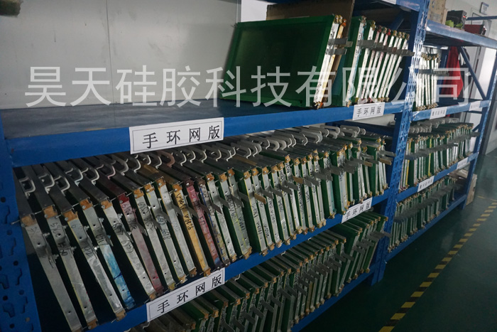品廠昊天硅膠,擁有自己的曬板部門,配置有拉網(wǎng)機(jī)、曝光機(jī)、烤箱、平衡儀等等設(shè)備。因?yàn)榫W(wǎng)版的質(zhì)量與硅膠套絲印質(zhì)量是直接掛鉤的,所以這道工序一直都是廠內(nèi)完成的。另外,這樣做還有一個(gè)好處,就是客戶的設(shè)計(jì)信息會(huì)更加的保密。